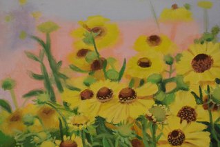 Image 5: “This painting is about longing and belonging. The dense flowers, all stretching towards the sun, illustrates that these flowers belong together, glowing, thriving, making people feel happy and showing that there is hope and joy to be found in life if you only look.”